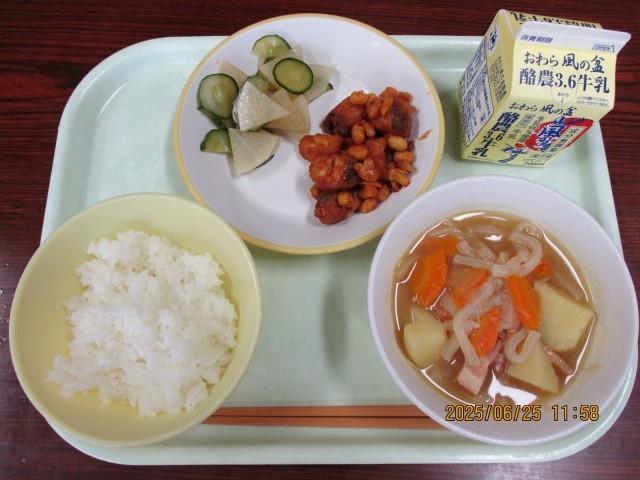 ごはん  牛乳  ホキと大豆のマリアナソースからめ
