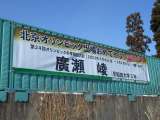 船峅小学校卒業生である廣瀬崚選手を応援する横断幕が、地域の方によってプール横に...
