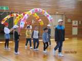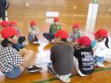 集会の中で、ボールを回すゲームを行いました。大きな輪になり、隣から隣へボールを...