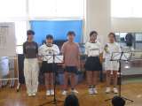 代表の児童が、1学期の振り返りとこれからの目当てについて発表しました。堂々とし...