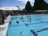 今日は夏休みのプール開放初日でした。「プールの中で目を開けられたよ」「息継ぎが...