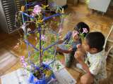 くしゃくしゃにした袋状の紙で、雪だるまや動物など、好きな形を作りました。 作った...