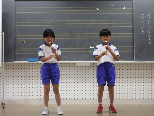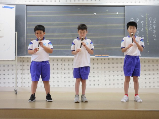 音楽の時間に「リコーダー発表会」がありました。3年生の6月頃からリコーダーの曲に挑戦したばかりですが、素敵な音色でピアノの伴奏としっくりきた素敵な発表会でした。