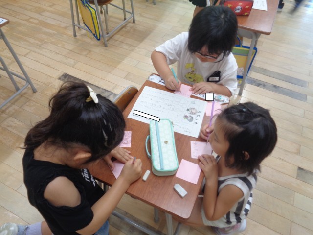 1年生は、この間の3連休の出来事の絵日記を書き、クラス全員で読み合いました。
