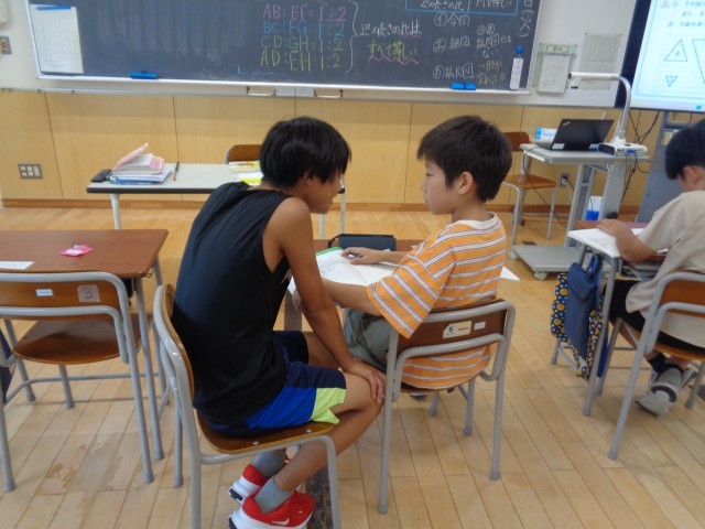 2つの図形の辺の比を知る方法について考えました。近くの子と関わりながら学びを深めていました。