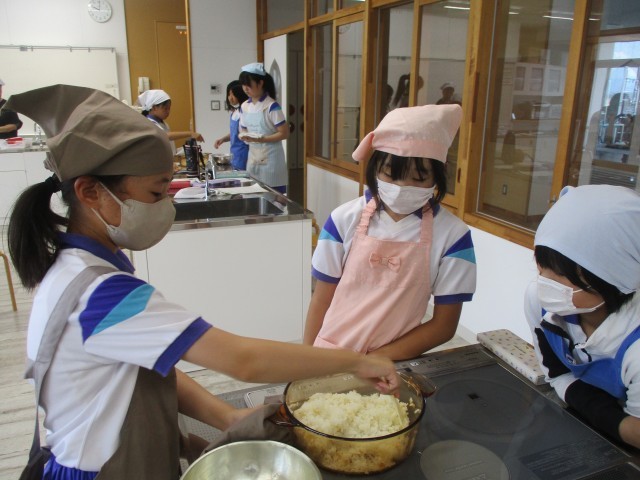透明な鍋なので、ご飯が炊けていく様子を見ることができました。また、ご飯が炊けていくにつれおいしそうなにおいもしてきました。どのグループも少しおこげがあって、おいしそう。