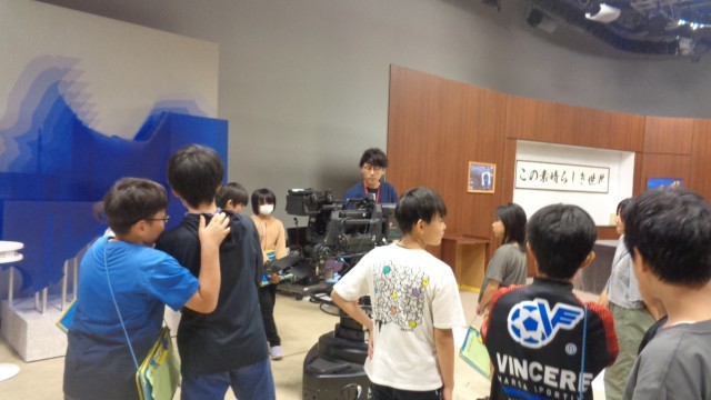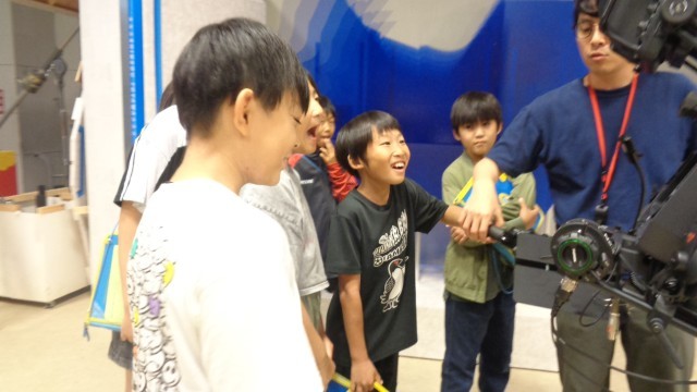 初めて見るスタジオや機材に興味しんしんの子供たち。ニューススタジオのアナウンサーの席に座らせてもらったり、カメラを実際に動かさせてもらったり、貴重な体験をすることができました。