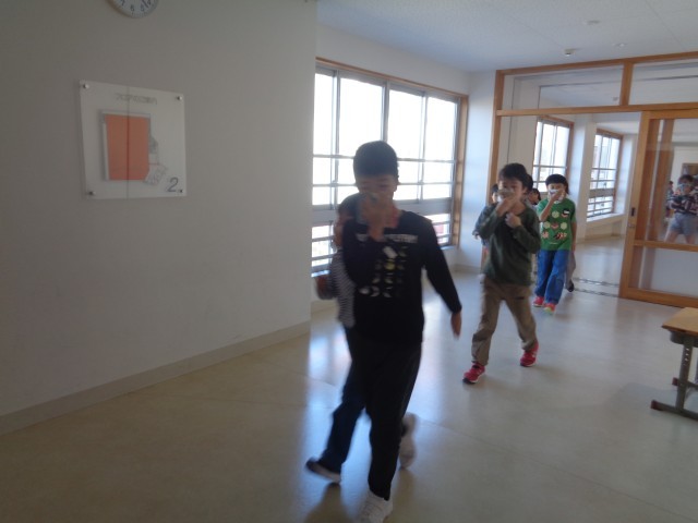 今日は、休み時間の火事を想定した避難訓練を行いました。