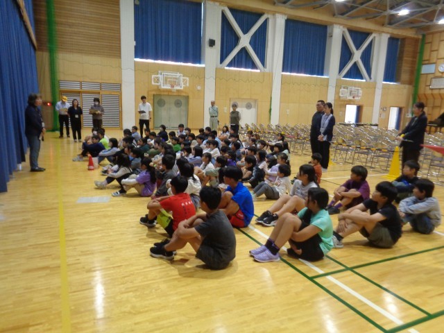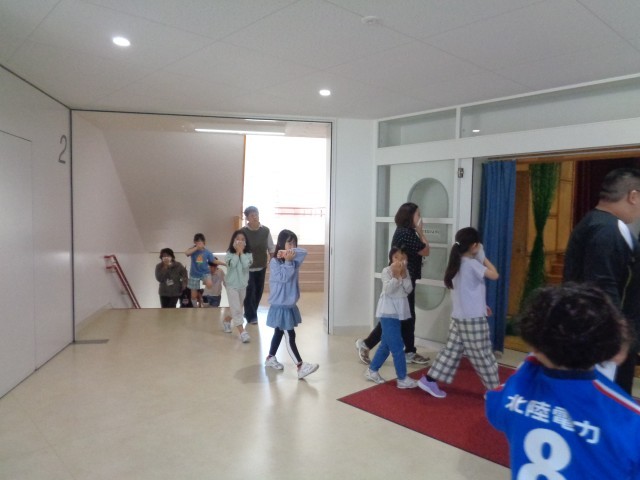 非常ベルが鳴るとその場で座り静かに待つ姿や、放送を聞いた後に口元を覆いながら避難する姿が見られました。