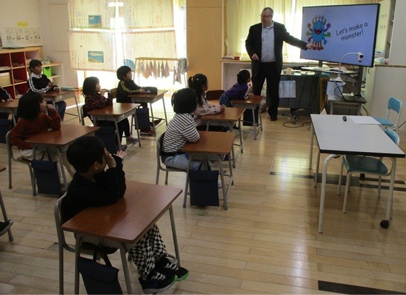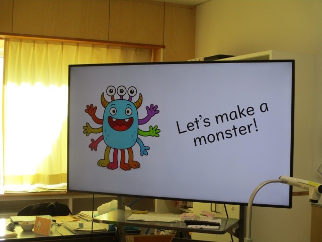 目や口、腕等、身体の各部分について英語で学んで、オリジナルモンスターを描きました。