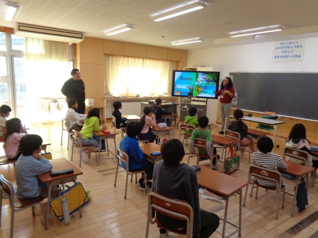 新しいALTの先生と音楽に合わせて歌ったり踊ったりしました。ALTの先生の自己紹介や歌を聞いて、子供達も自分の好きな歌や踊りをALTの先生に紹介しました。