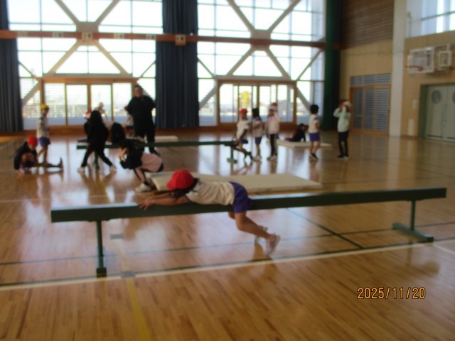 11月20日(木) 体育「にんじゃごっこ」(1・2年生)