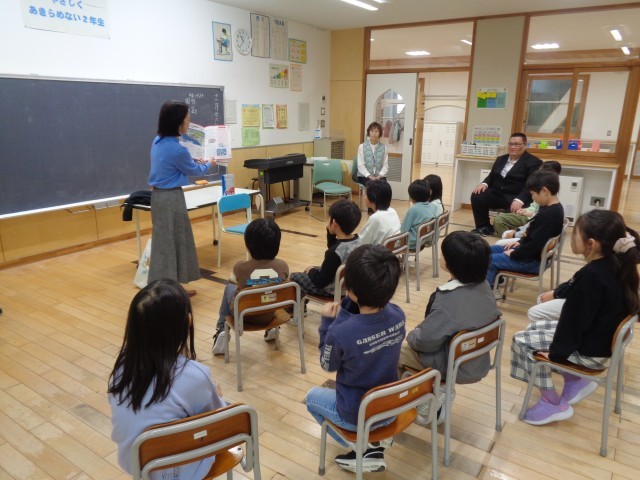 2年生の3時間目には、大山図書館の方が来てくださり、たくさんの本を紹介していただきました。ストーリーテリングや、クリスマス・お正月等のこれからの季節にピッタリな本の読み聞かせに、子供たちも夢中になっていました。