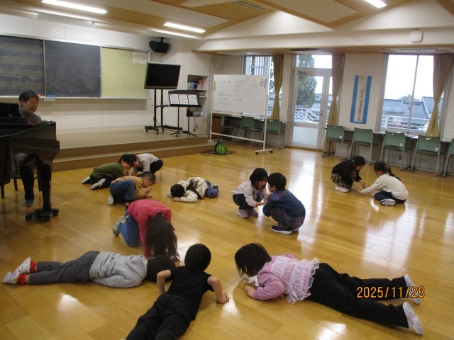 まずは、ダンスからスタート。学園天国の曲に合わせてノリノリに踊ったり、リズムに合わせてゲームをしたり・・・。みんな楽しそう。