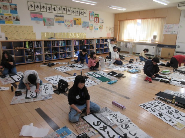 今日は、3回目の書初め練習を行いました。毛筆での書初めが初めてだったのですが、3回目になると、少しずつ準備や後片付けも手際よくなってきました。難しい「め」や「の」の文字も上達しています。3学期始めの「書初め大会」が楽しみです。