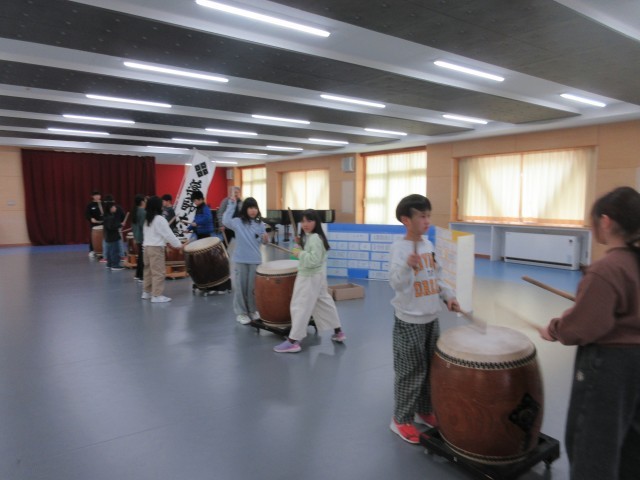 今日の5時間目は、異世代交流学習でした。地域の方を先生にお迎えして、旧大山町に伝わる「薬師太鼓」に挑戦しました。先生のリズムに合わせて、4分音符や8分音符のリズムを叩いてみました。先生から、みんなで心を合わせて太鼓の音色を合わせることが大切だと教えていただきました。次回は、少し難しいリズムにも挑戦する予定です。