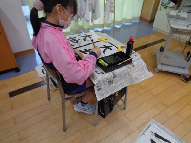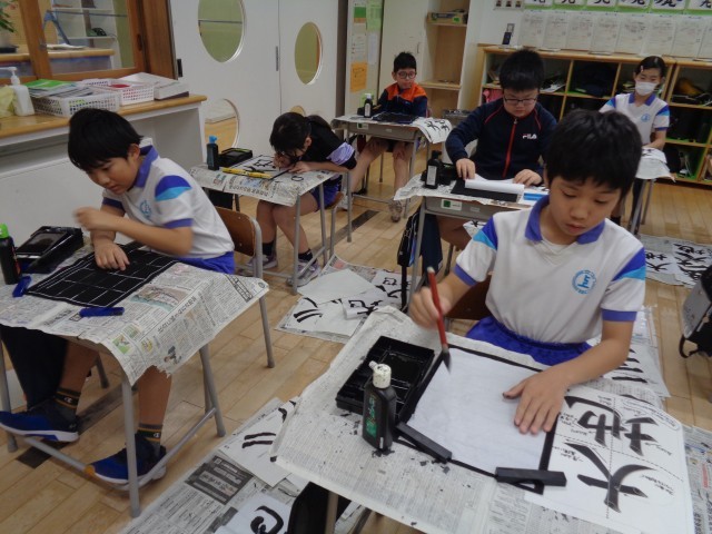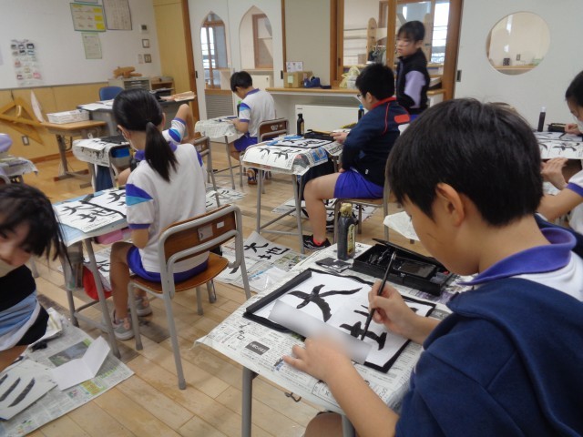 1回目ということもあり、「形をとるのが難しい」と悩みながら筆を運んでいる子供もいましたが、「いつもより上手く書けた。」と難しいからこその達成感を感じた子供もいました。一年の成長が表れた、どっしりとした素晴らしい作品ができるように引き続き練習をしていきます。