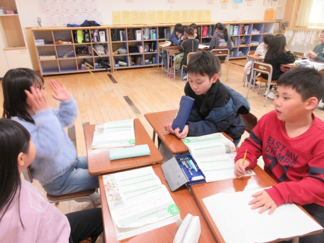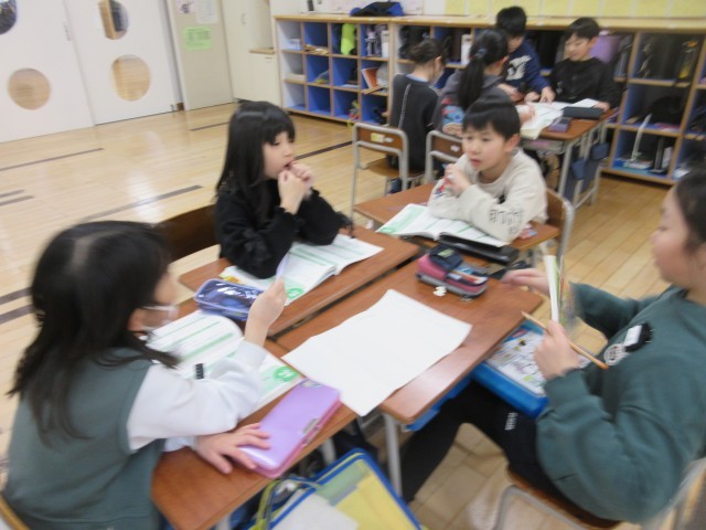 今日の道徳の時間は、「マナーを守るのはなぜ?」というお話で、「給食のマナーはなぜあるのか?」について話し合いました。今週は、給食週間でもあるので、ぴったりの内容でした。グループごとに、4つの項目(箸を使うのは、皿を持つのは、等)について意見を言い合いました。話し合っているうちに、マナーは衛生面等の自分のためだけではなく、不快な思いをさせないなど周りの人のことも考えていると気付いたようです。