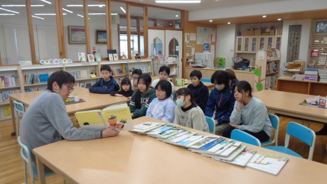 読み聞かせが終わると、展示されていた本を手に取り、さっそく借りていく子供たちの姿がたくさん見られました。おいしい給食を入り口に、作者へと関心を広げ、読書の世界に浸る素敵なひとときとなりました。