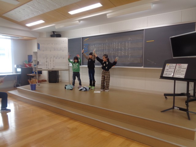 3限の音楽では、1年生が「はる なつ あき ふゆ」という歌を練習していました。