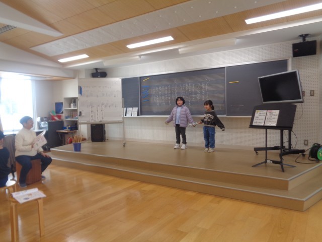 子供たちは季節ごとのグループに分かれて歌っており、自分のパートが来ると、前に出て元気いっぱいに歌っていました。とっても楽しそうな歌声が音楽室に響いていました。