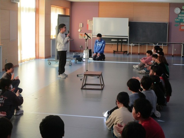 今日のなかよしハッピータイムでは、全校のみんなでゲームをしたり合唱したりしました。ソロでの発表もあり、すてきな歌声が響きました。入退場は、先生方の生演奏です。朝から楽しい時間でした。