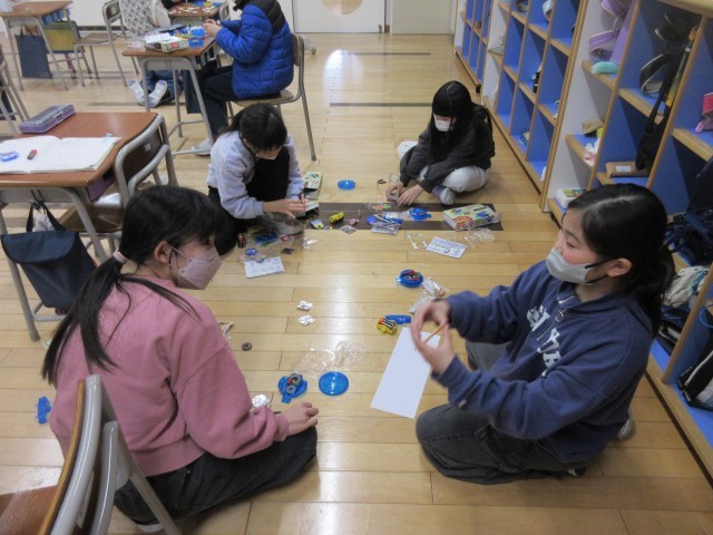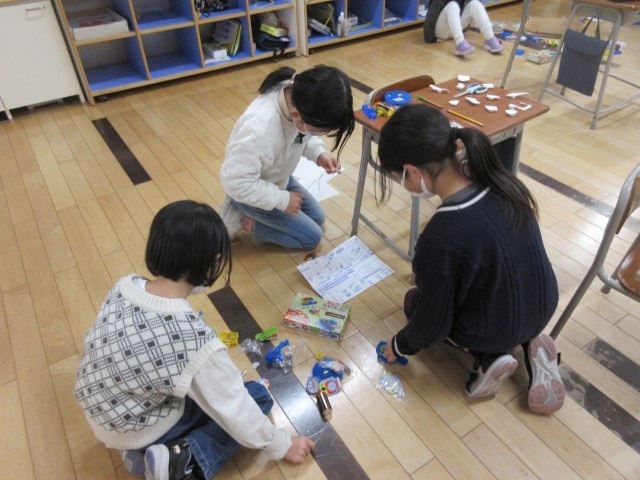 学習の集大成である「つくってあそぼう」では、学んだ知識を総動員しておもちゃ作りに没頭しました。「どうすればもっと動くかな?」「磁石の向きを変えたらどうなるだろう?」等と工夫して試行錯誤を繰り返していました。夢中でおもちゃ作りに取り組みながら、科学的な思考が深まったり学ぶ意義を感じたりしてくれたと思います。