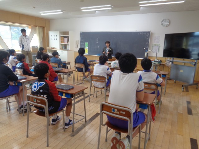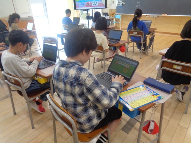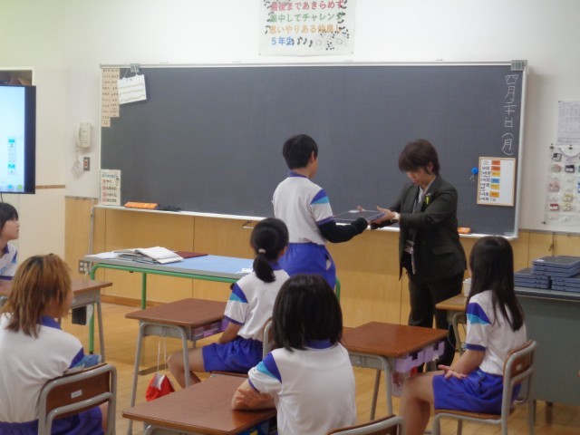 新しい端末が一人一人に校長先生から配付されました。そして、新しい端末の使い方についてお話していただきました。子供たちは、うなずきながらとても真剣な表情で聞いていました。お話の後は、実際に端末を使って学習を始めます。子供たちは新しい端末を、わくわくした表情で使っていました。端末を正しく使って学習を充実させてほしいと思います。
