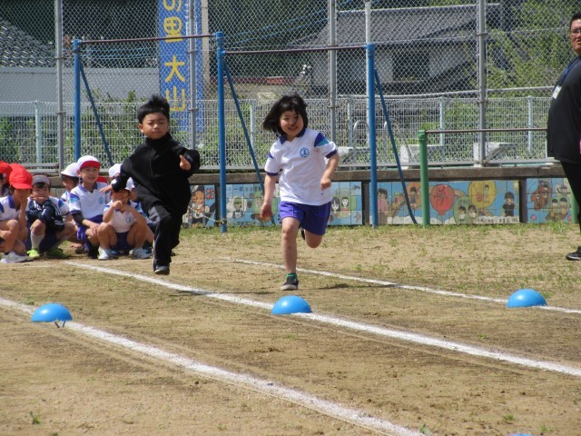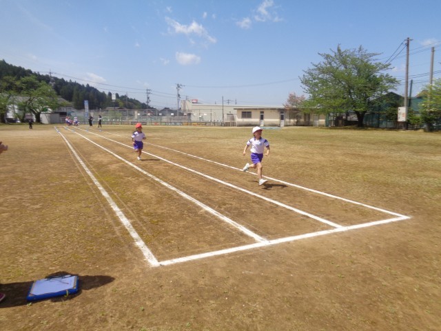 3時間目は、体育です。子供たちは、50mのコースを一生懸命走っていました。だんだん暖かくなってきて、屋外での活動も増えてきました。子供たちは水分補給をしながら、外でも元気に活動しています。
