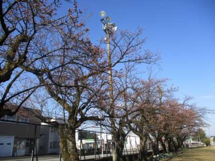グラウンド南側の桜並木は、今朝の時点で「開花」の状態です。つい先日まで「雪の華」が咲いていたことを考えると、季節の変化の速さに驚かされます。
