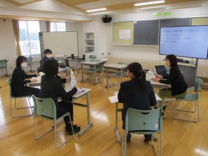 学校の方でも、明日の準備を整えています。教室をきれいにするのはもちろんのこと、「学級びらき(その年度の最初)」をどう進めていくかの作戦をねっています。写真は「わかば研」という若手の先生が行っている研修会の様子です。教務主任の先生が講師として参加しています。写真に見たことのない先生も写っていますが、明日の着任式で紹介しますので楽しみにしていてください。