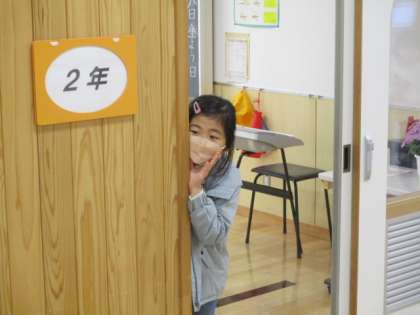 1時間目が終わった時に1階教室に行ってみたところ、2年生の女児が活躍していました。