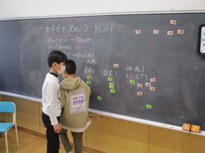 6年生教室をのぞいた時には、「委員会を決めよう」という課題で、委員会の役割分担をしていました。