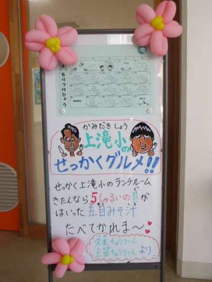 4月8日(金) ランチルーム前の案内 公開日 2022/04/08 更新日 2022/04/08 職員室から ランチルーム前にある献立用の看板に、上手なイラストが描いてありました。どこかで見た番組ですね。