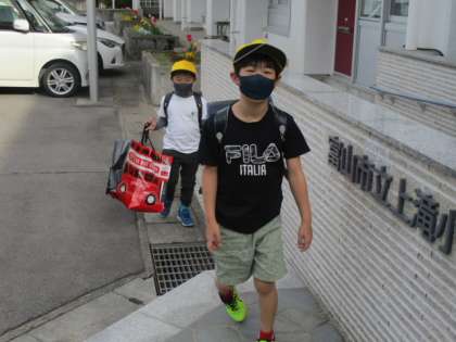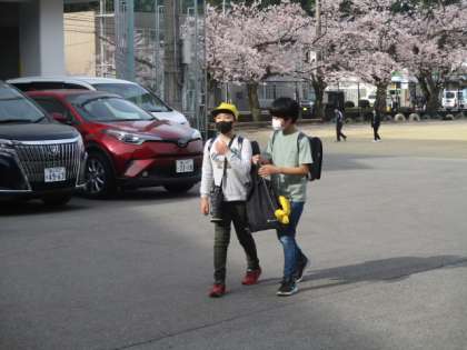 今日の登校の様子です。まだまだ児童たちの服装の主流は長袖ですが、さすがの気温に半袖に半ズボン(スカート)の児童も増えてきました。