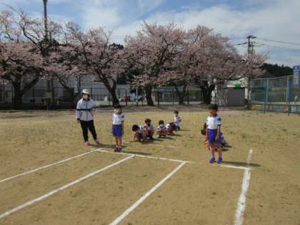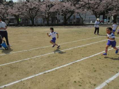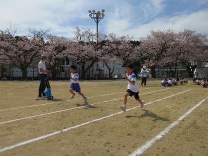 50m走のタイムを計りました。ゴールまで全力で走っています。待っている態度も大変すばらしいです。