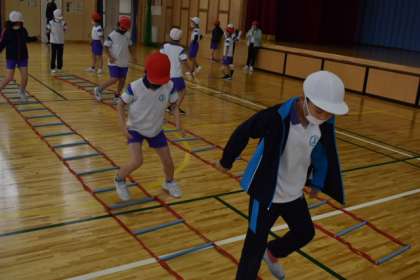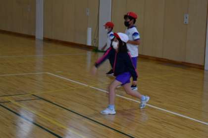 今日は低学年の「さわやか体育」の日でした。あいにくの天気のため、グランドを使用せず室内での運動としました。