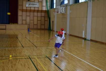 2年生は「投」の日になっています。準備運動でラダーを使った後、ソフトボールを持って練習を始めました。