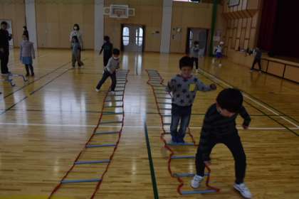3年生は「走」の順番でしたが、前半はソフトボール投げにも挑戦しました。その後は、ラダーやミニハードルを使ったメニューに取り組みました。