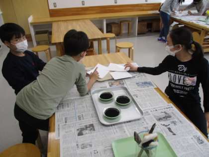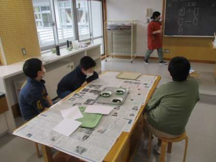 5時間目の6年生は図工の授業でした。今日の授業では「水墨画」にチャレンジしました。まずは作品を作る前に材料の確認です。3種類の和紙を触って、その質感を確かめてみました。