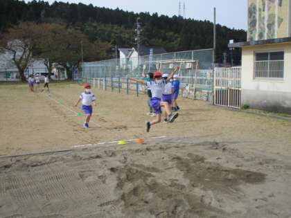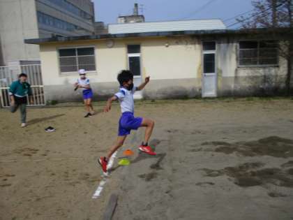 4年生は「跳」の順番です。準備運動、ラダーのトレーニングの後、時間がなかったので1本限定で走り幅跳びに挑戦しました。