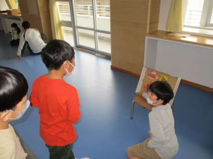 2年生は1年生を楽しませるために活躍しました。それぞれの「あそびコーナー」のPRをした後には、遊びに来た1年生のお世話をします。