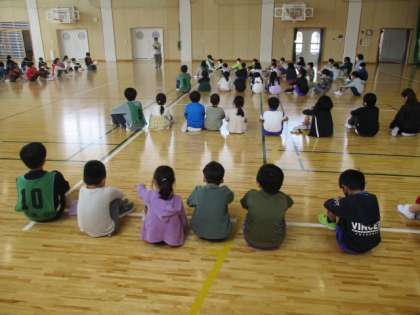 本日の給食後、体育館に全校生徒が集まり「たてわり清掃結成式」を行いました。この集会では、班長や副班長の役割(リーダー)を担当する6年生が大活躍しました。