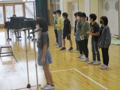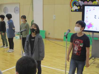 司会進行を担当するのは集会委員です。大勢の人の前で話すのは緊張するものですが、台詞も覚えてきているようです。役割や責任を果たすことで、とっても成長しています。