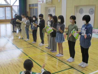 最後のコーナーは「今月の歌」です。4月の歌「いいことありそう」を5年生が歌ってくれました。
