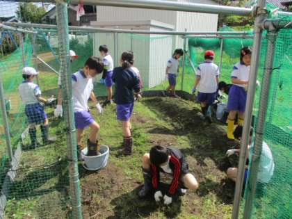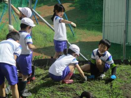 1時間目の2年生は、畑へ行って草むしりをしました。近々、畑を耕しうねを作る予定ですから、出来るだけその作業がしやすい状態にしておきたいと考えています。うね作りの時には地域のボランティアの方々に来てもらいます。今から楽しみです。
