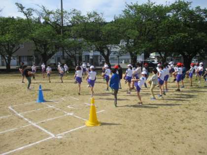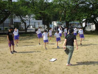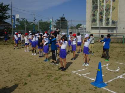 2日(月)に下学年が50m走の試走を行いましたが、今朝の克己タイムには上学年が試走を行いました。