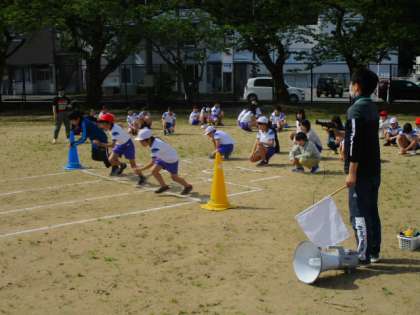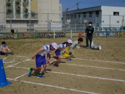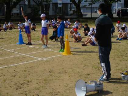 5年生の試走の様子です。今日は放送でのアナウンスがありましたので、元気に手を挙げ「はい!」と大きな声で返事をしました。