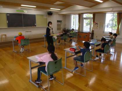3年生の3時間目は音楽の授業でした。この授業では鍵盤ハーモニカの練習をします。授業の初めには担任の先生から、指使いについての説明を受けました。
