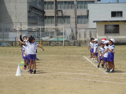 リレーの練習後には、結果発表の練習をしました。「1位、○○団!」という放送に合わせ歓喜の声をあげる練習もしましたが、果たして本番では赤白どちらの団が練習の成果を発揮できるのでしょうか。楽しみです。